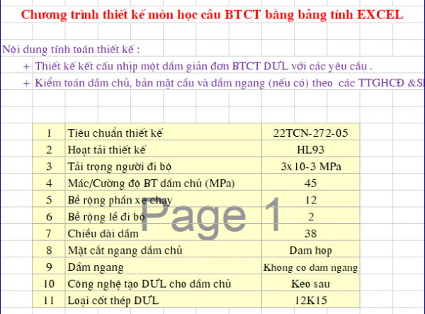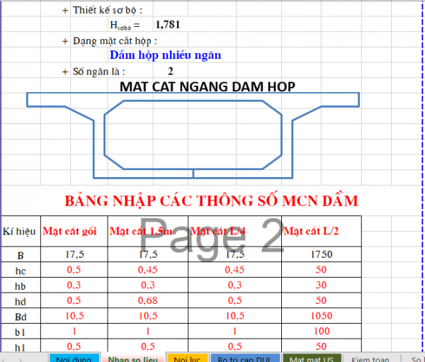 File bảng tính toán thiết kế dầm hộp, chú ý các bạn không lên bật macro khi chạy để nhập số liệu thiết kế.
