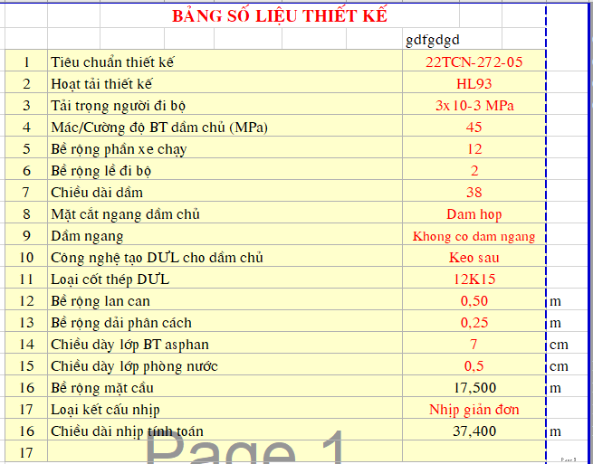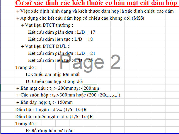 Excel Bảng tính thiết kế bảng mặt cầu dầm hộp nhịp giản đơn.