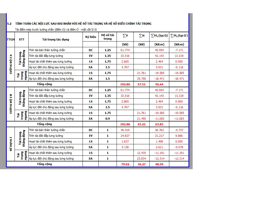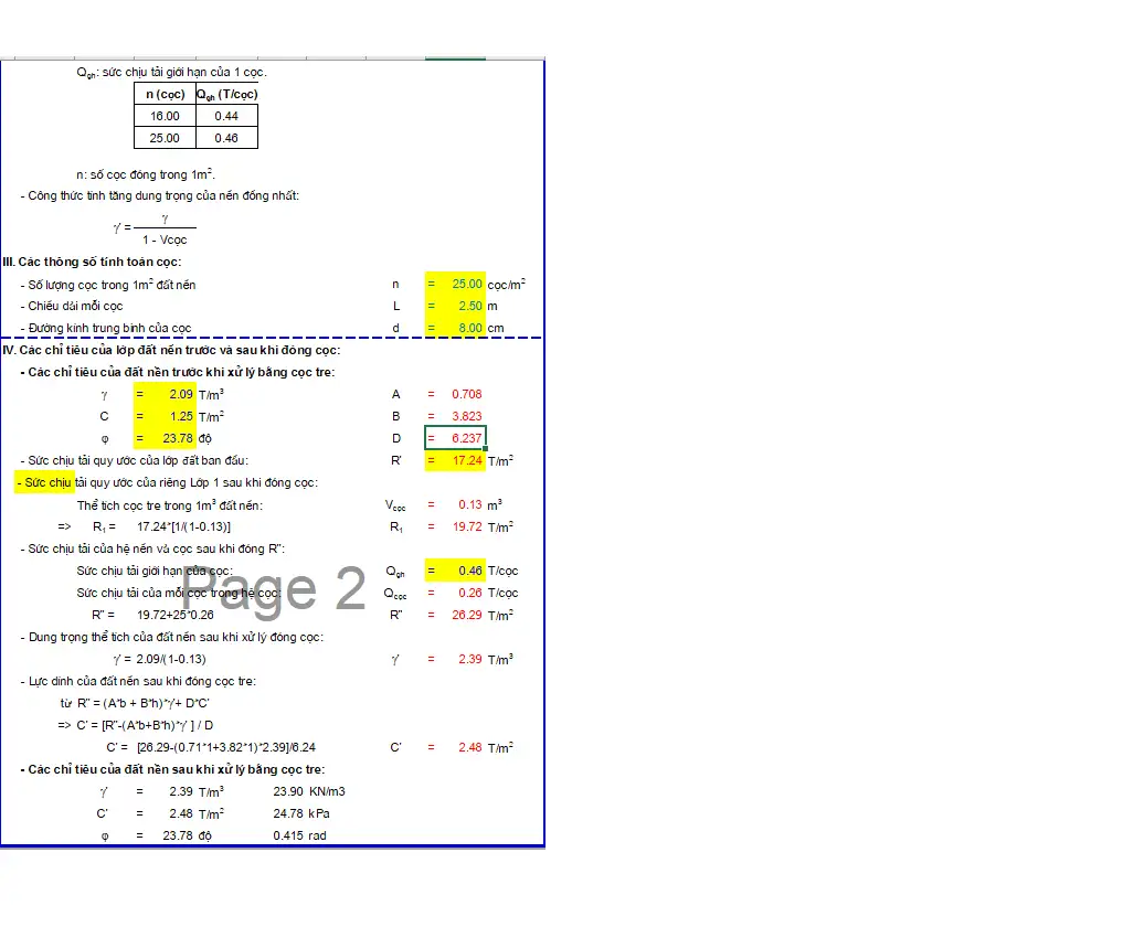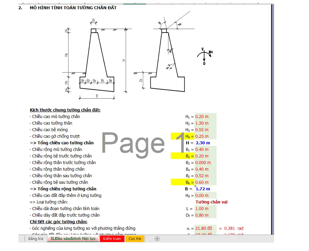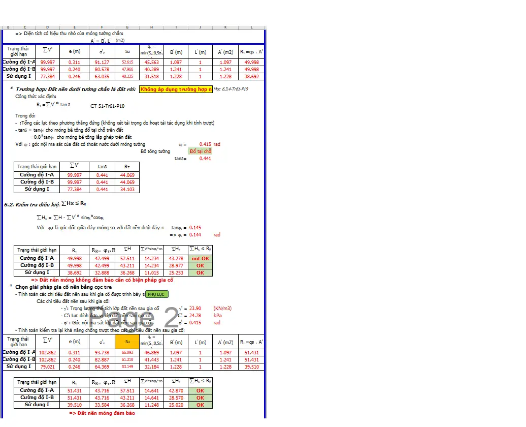 Bảng tính tường chắn bt trên móng cọc tre-cừ tràm theo tiêu chuẩn mới nhất hiện tại, chi tiết mời xem ảnh: