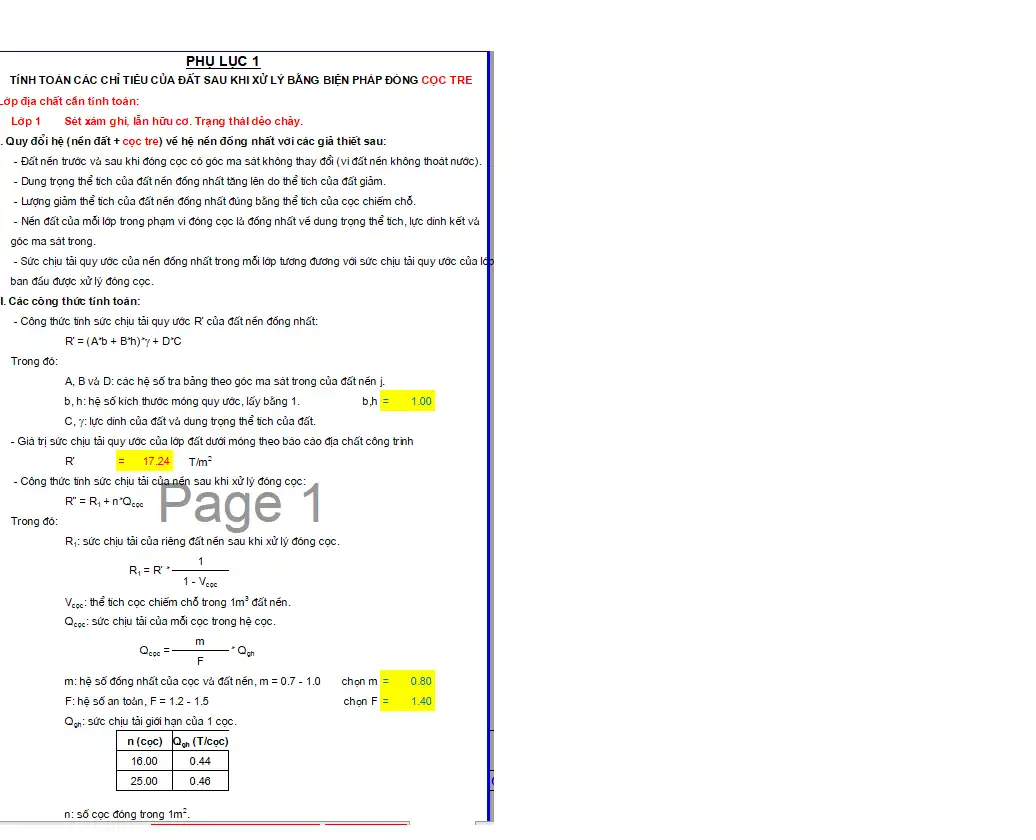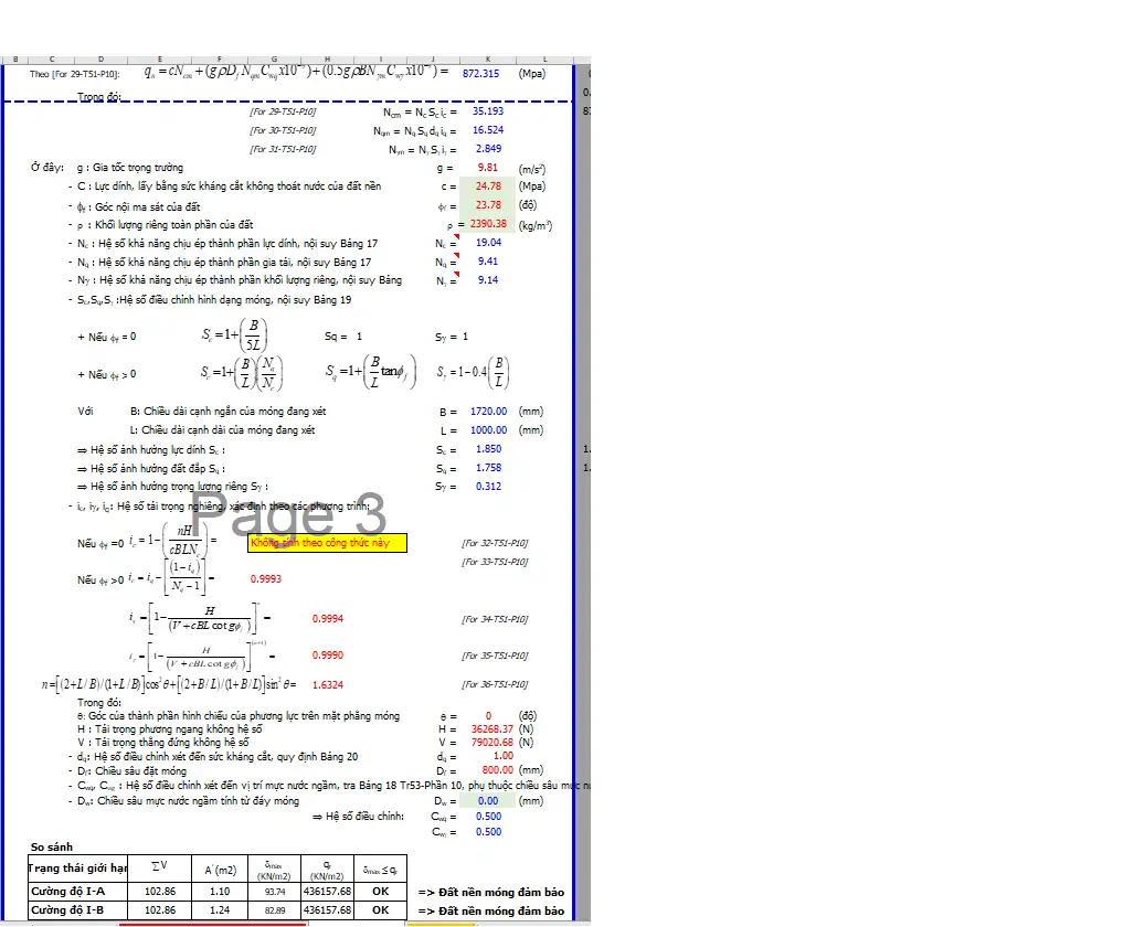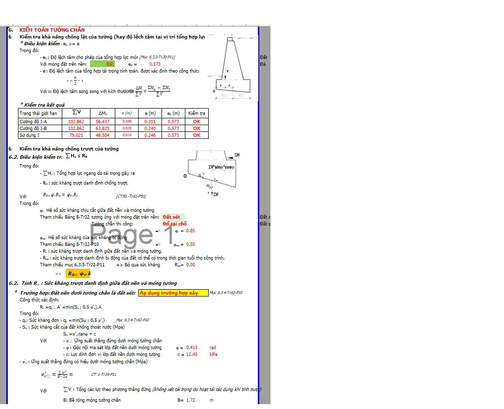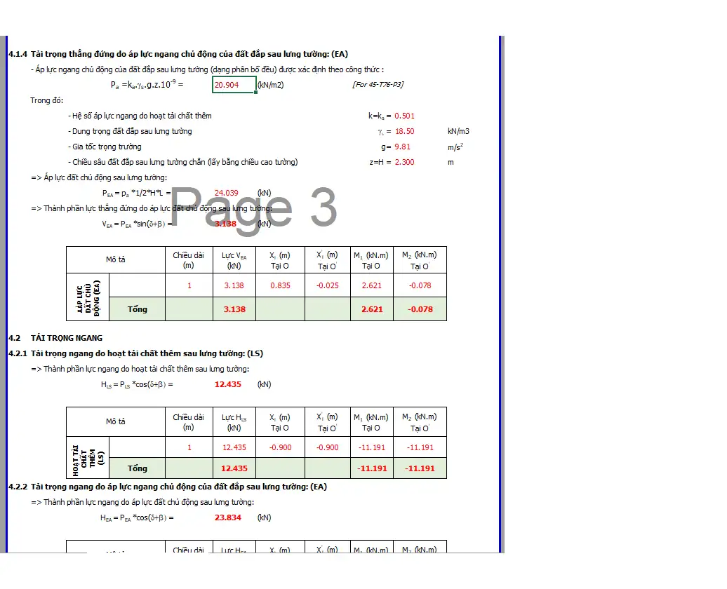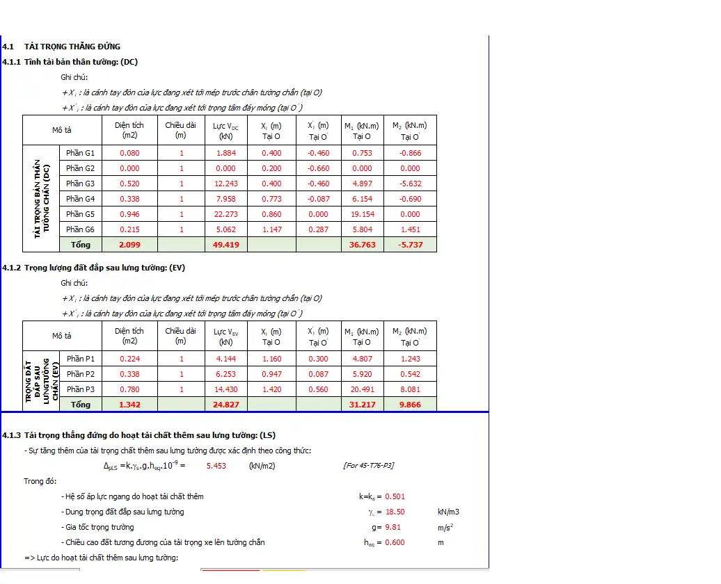 Bảng tính tường chắn bt trên móng cọc tre-cừ tràm theo tiêu chuẩn mới nhất hiện tại, chi tiết mời xem ảnh:
