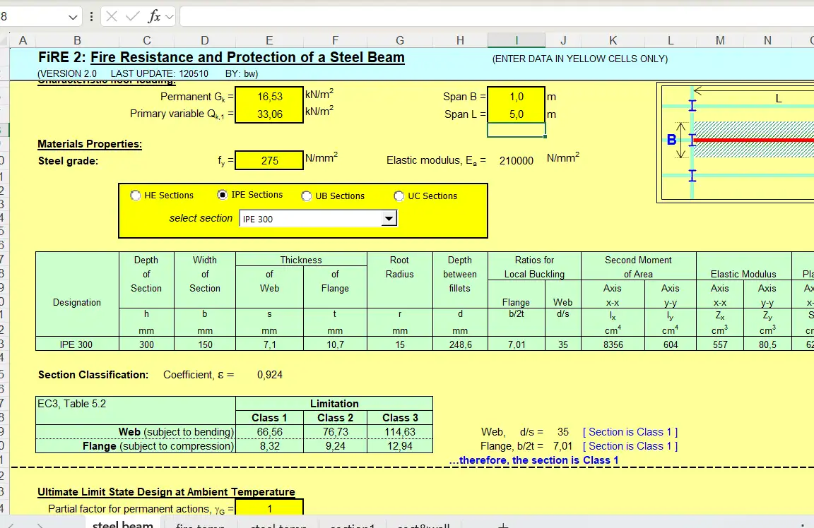 Bộ file excel thiết kế chống cháy theo tiêu chuẩn Eurocode 3-4