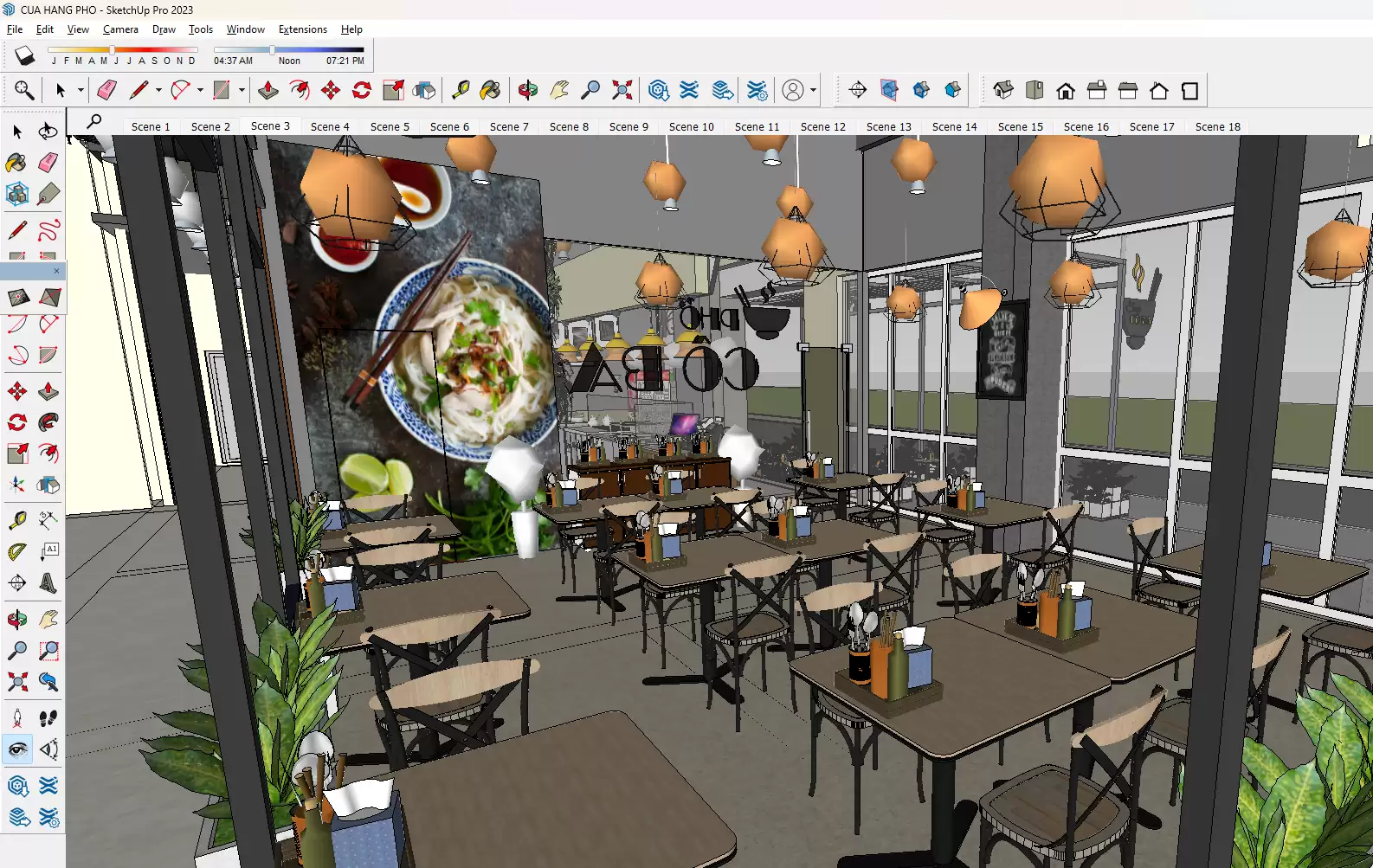 Khi cần thiết kế không gian cho cửa hàng, quán phở, hoặc tiệm ăn, việc sử dụng thư viện SketchUp là rất hữu ích. Bạn có thể mua thư viện SketchUp hoặc tham khảo thư viện SketchUp online để tìm kiếm các model cửa gỗ SketchUp phù hợp.
