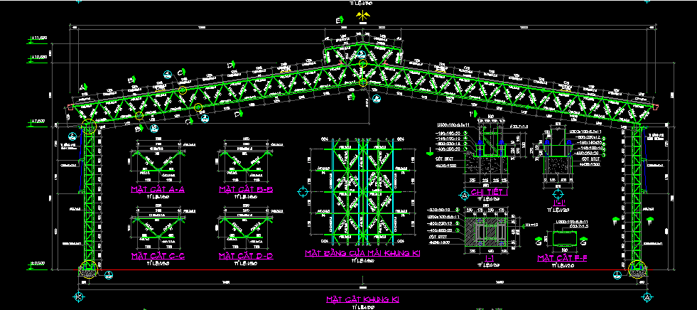 File kết cấu nhà xưởng dạng giàn kích thước 127x30m
