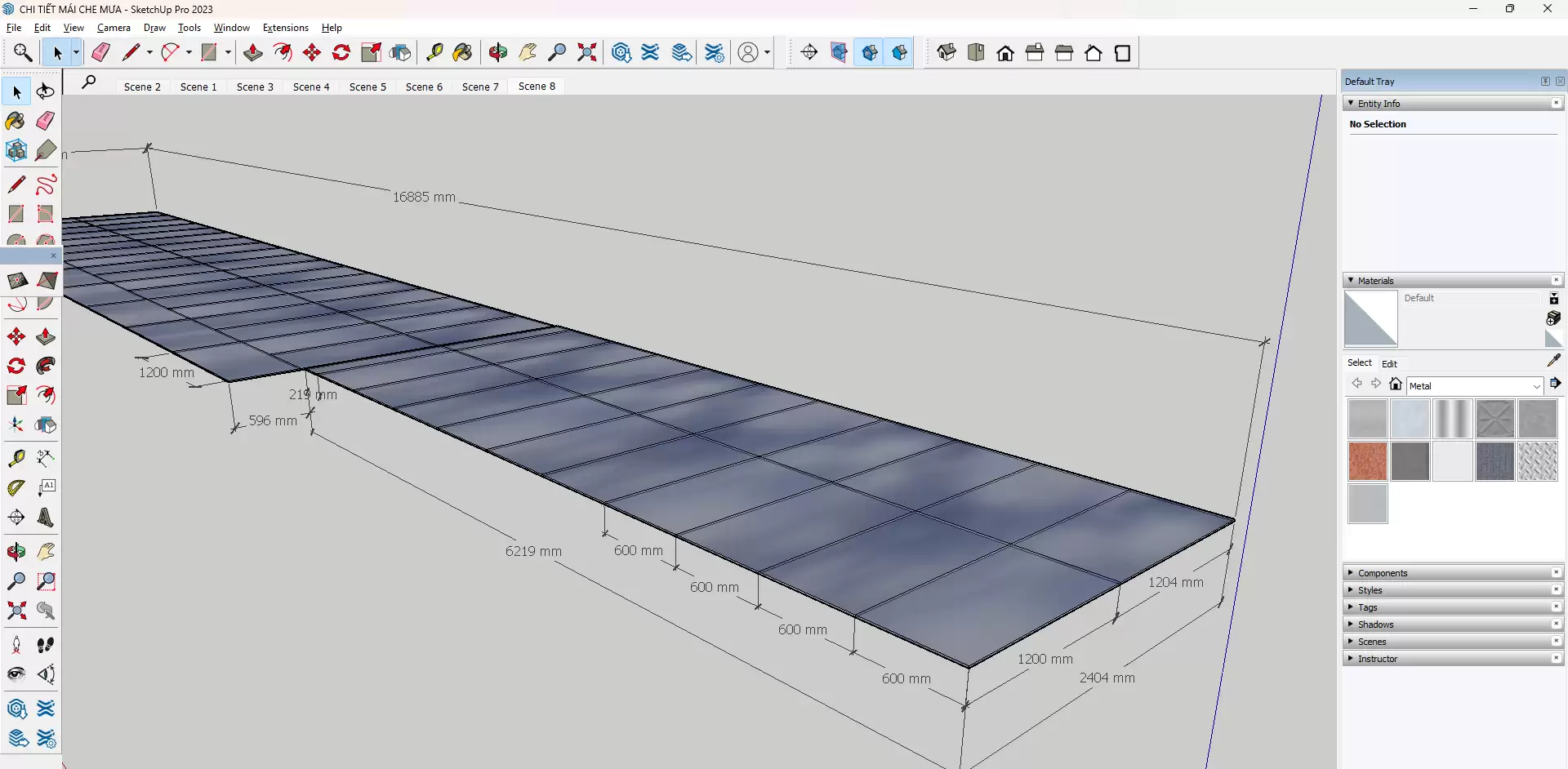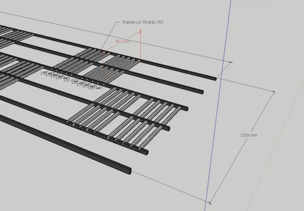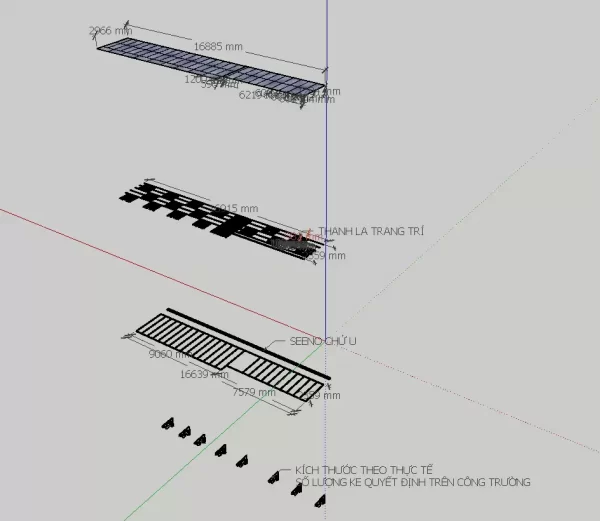 Bản vẽ sketchup triển khai chi tiết mái hiên kính (đã sử dụng trong thi công thực tế)
