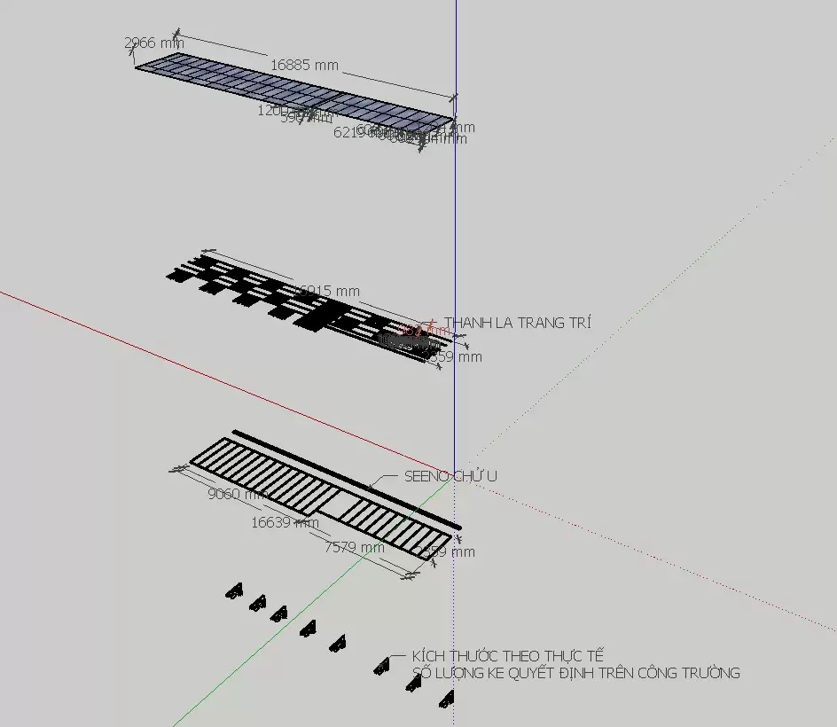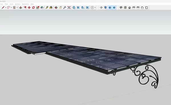 Bản vẽ Sketchup chi tiết triển khai mái hiên kính, đã sử dụng trong thi công thực tế